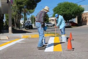 🚸 Reforzamos la seguridad vial con la rehabilitación de pintura en pasos peatonales de zonas de alta afluencia, como la plaza 80 Aniversario, el centro y la calle Tercera.