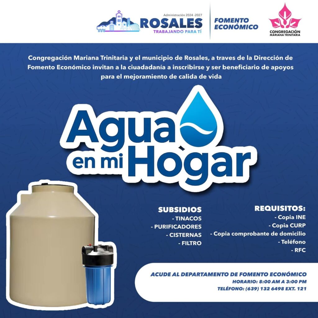 La dirección de #FomentoEconómico te invita a aprovechar el programa “Agua en tu hogar”, una iniciativa pensada para cuidar tu salud y bienestar. Gracias a este apoyo, podrás adquirir tinacos, purificadores, cisternas y filtros a precio subsidiado, asegurando acceso a agua limpia y segura para tu familia.
