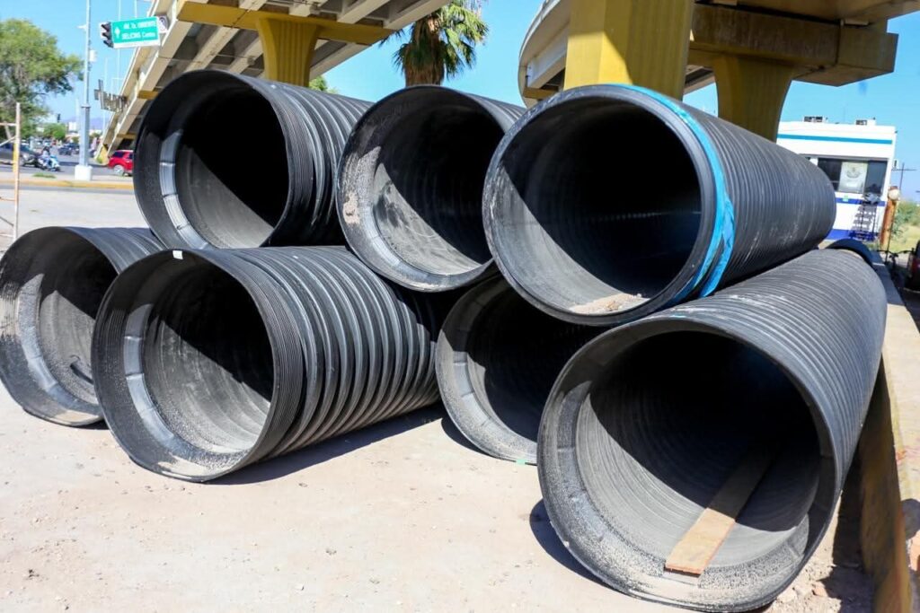 💧 Supervisamos la segunda etapa del colector Fonapo, que va desde Soriana hasta la Fernando Baeza y se enlaza con el colector de la Séptima. Con esta obra, el drenaje dejará de llegar al dren Laguna Seca y será conducido directamente a la PTAR Norte.Seguimos trabajando junto a la JMAS Delicias, sumando esfuerzos por las familias que confían en nosotros y en el futuro de Delicias. 🤝 #SigamosConstruyendo
