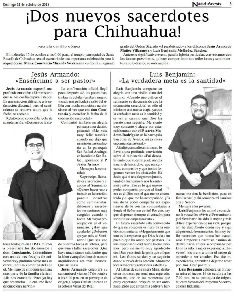 🎉Dos nuevos sacerdotes para nuestra Arquidiócesis de Chihuahua