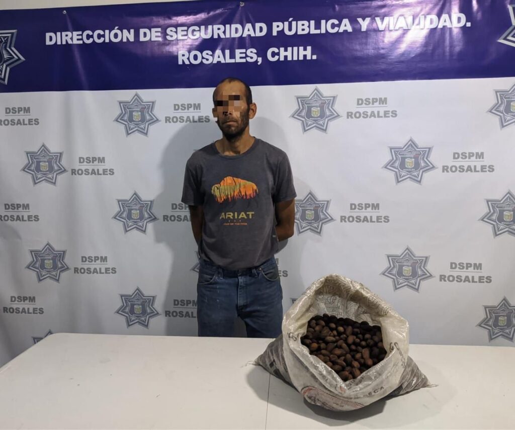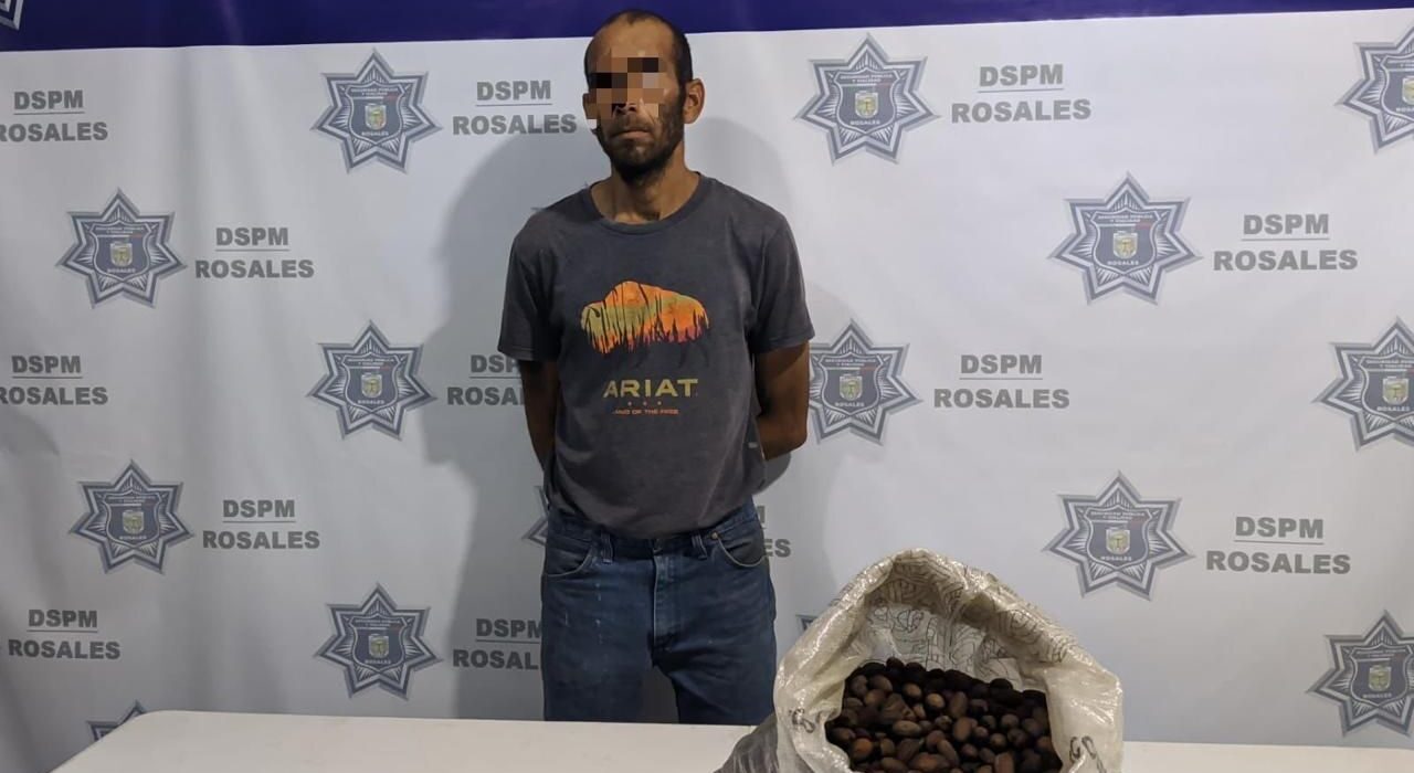 En el marco del Operativo de Cosecha de Alto Valor 2025, este martes al realizar recorridos de vigilancia sobre caminos vecinales del municipio de Rosales, elementos de la Dirección de Seguridad Pública Municipal tuvieron a la vista a un masculino que cargaba un costal blanco con lo que aparentaba ser nuez.