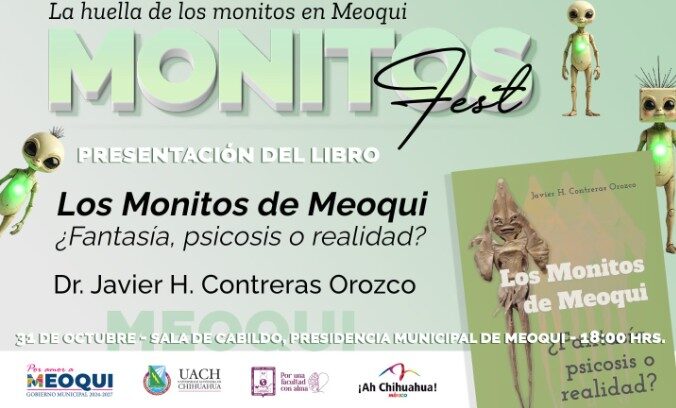 El 31 de octubre el director de la Facultad de Filosofía y Letras de la UACH, el Doctor Javier H. Contreras Orozco, asistirá a Meoqui para llevar a cabo la presentación de su libro “Los Monitos de Meoqui: ¿Fantasía, psicosis o realidad?”.