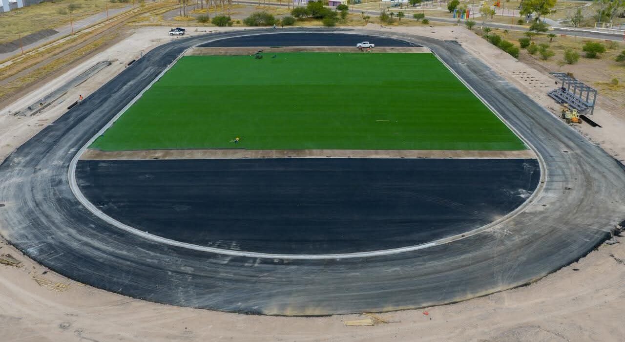 🏃♂️💙 Cada paso que avanza nuestra pista de atletismo es un impulso a los sueños de quienes entrenan todos los días.La colocación del pasto sintético y el progreso en el óvalo empiezan a darle vida a un espacio moderno, seguro y listo para recibir nuevas historias deportivas. 🌟⚽️Gracias a toda la comunidad que cree, entrena y empuja estos proyectos con su energía. Sigamos construyendo juntos el futuro del deporte en Delicias. #SigamosConstruyendo