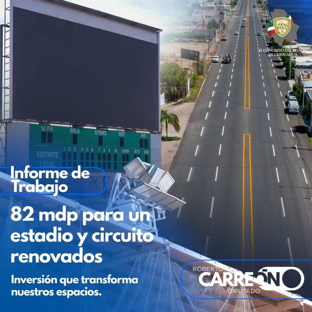 Se gestionaron 82 millones de pesos para pavimentación, promoción del deporte, remodelación de pantallas y sonido en el Gran Estadio de Béisbol. Gestionar es bajar recursos para beneficio de Delicias.