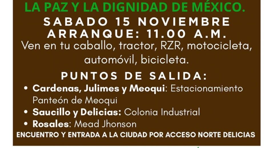 HACEN LLAMADO LOS AGRICULTORESA demostrar de qué estás hecho Chihuahua‼️Por nuestros hijos, nuestro patrimonio, nuestra región y nuestro país.Si hoy no levantas la voz, quizá tus hijos no puedan hacerlo mañana.Justicia para el campoDignidad para el sector salud, educativo.Seguridad para cada mexicano.