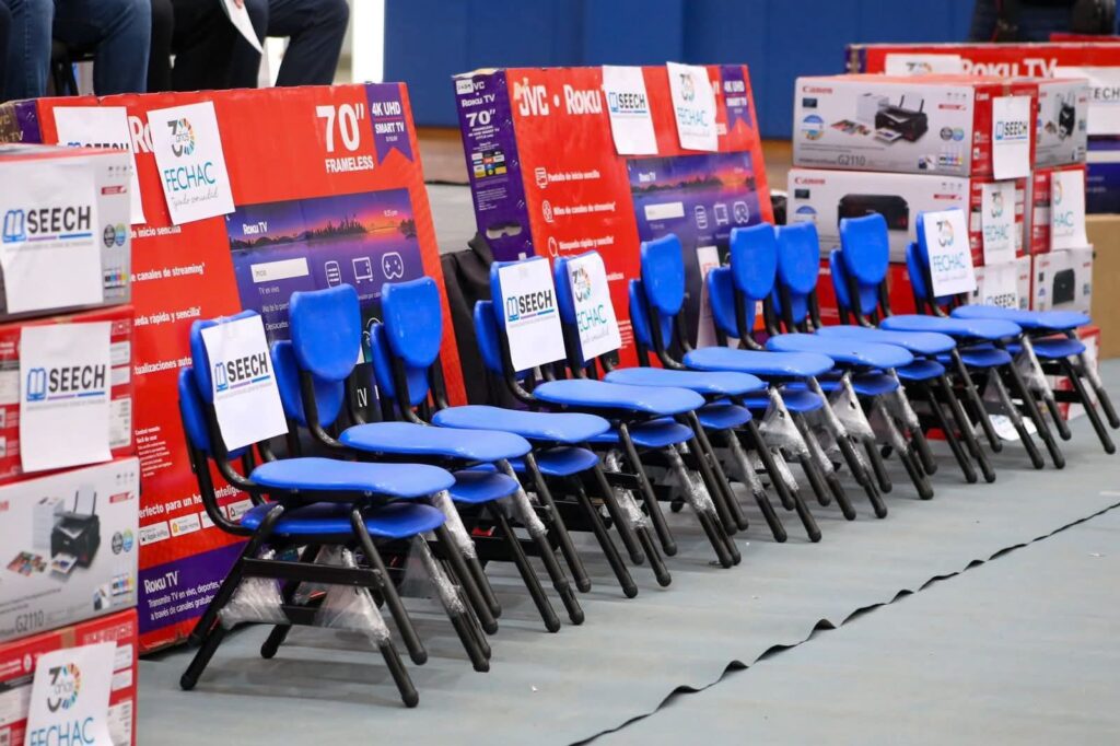 Gracias al respaldo de la Fundación del Empresariado Chihuahuense, A.C. (FECHAC) y de la Secretaría de Educación y Deporte, a través de Servicios Educativos del Estado de Chihuahua (SEECH), se realizó la entrega de equipamiento a escuelas federales de Delicias y de la región centro-sur del estado, beneficiando directamente a nuestra comunidad educativa.