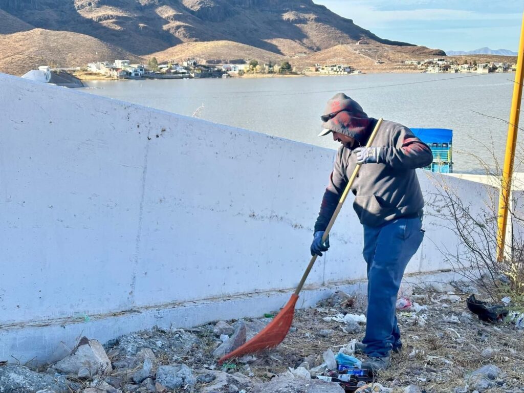 Rosales, Chih.– El Departamento de Servicios Públicos del municipio de Rosales continúa con los trabajos de limpieza y mantenimiento en la Presa Francisco I. Madero, mejor conocida como “Las Vírgenes”, uno de los principales espacios recreativos y turísticos de la región.