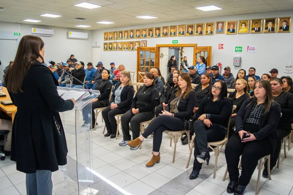 Por su parte, María del Consuelo Arias Mendoza, Secretaria General del Sindicato al Servicio del Municipio de Meoqui, destacó la alianza que se mantiene con la administración municipal. Señaló que la alcaldesa Miriam Soto siempre ha mostrado interés en el bienestar de las familias trabajadoras y resaltó que la relación con el sindicato se ha desarrollado en un ambiente de respeto y armonía. Asimismo, expresó que los trabajadores cuentan con las herramientas necesarias para desempeñar sus labores de manera adecuada.